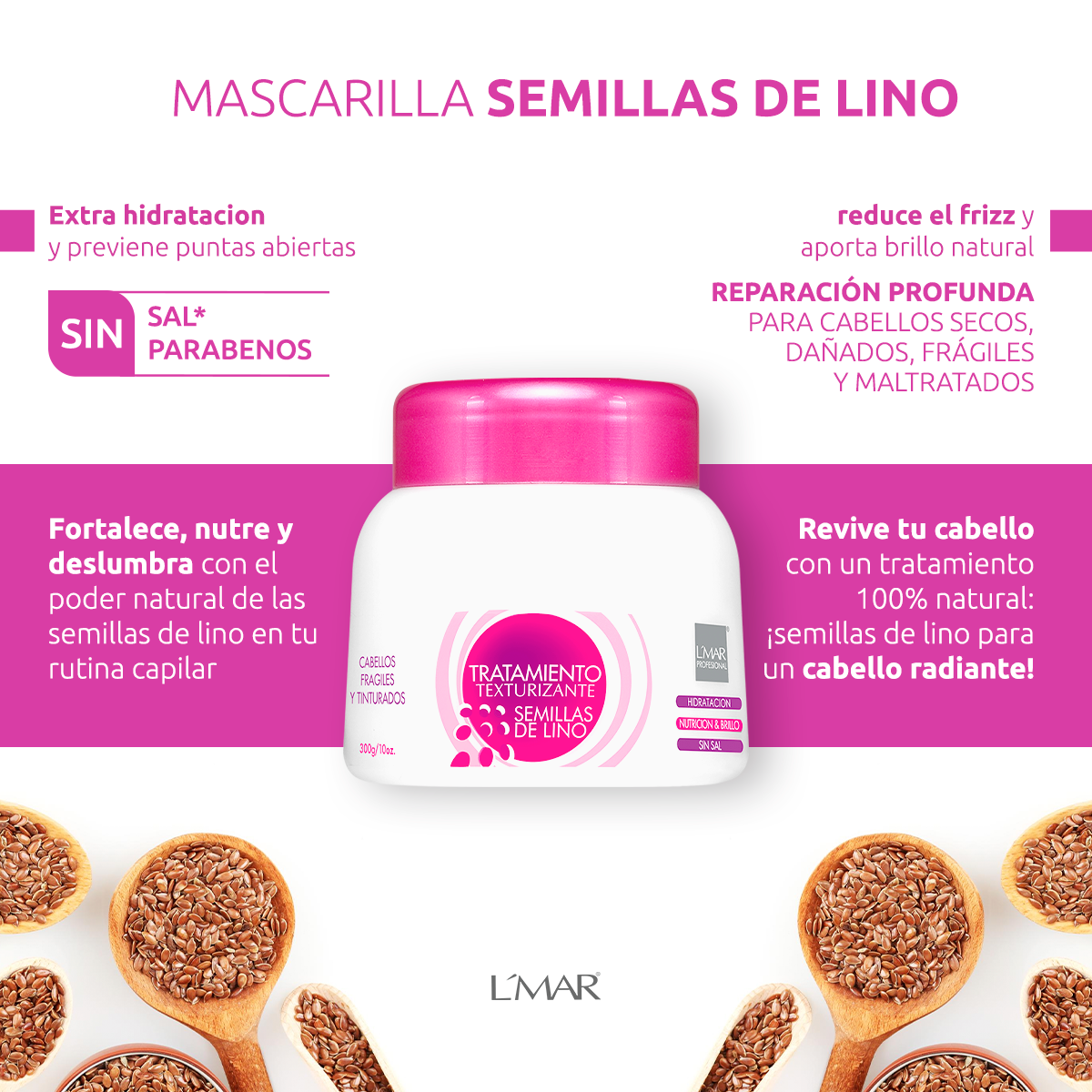 Lavar con el Shampoo Texturizante Semillas de Lino.